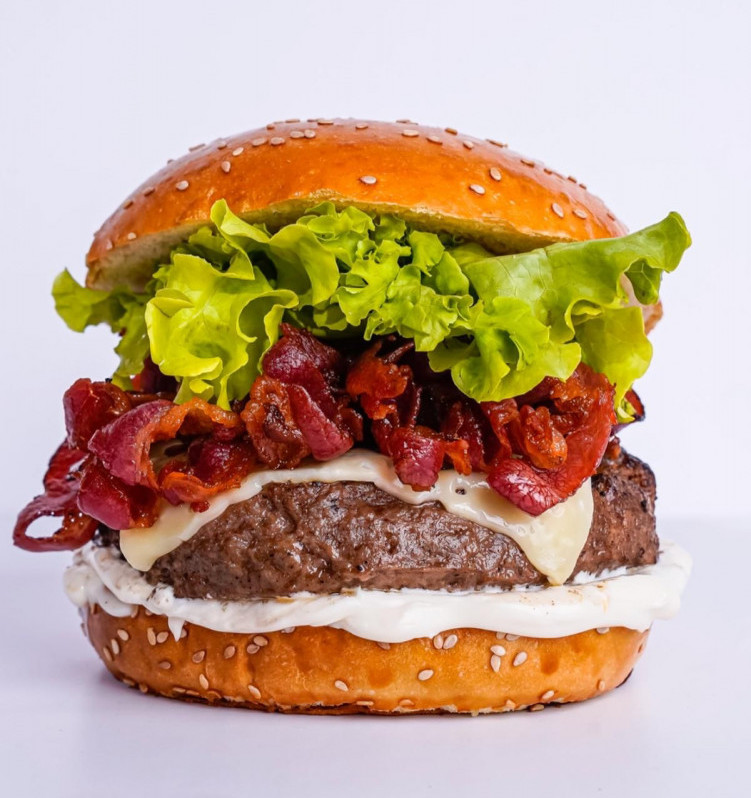 בורגר 220 גרם עם תוספת בייקון טלה בתוספת גבינת ציידר כולל ציפס